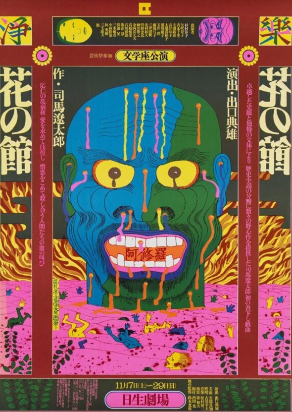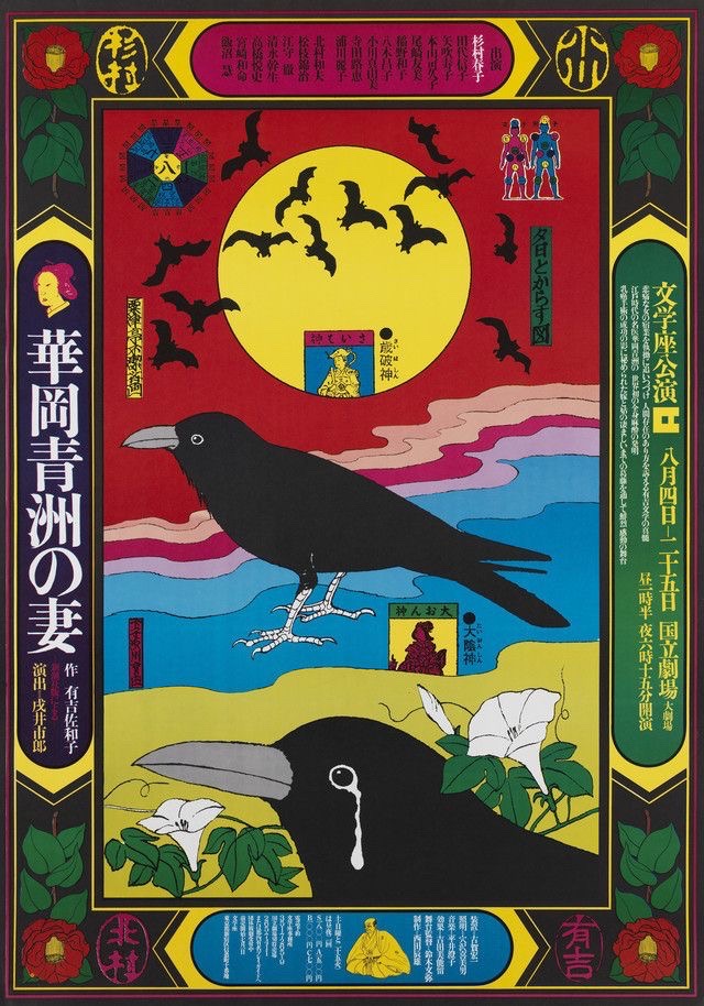 Awazu Kiyoshi was a pioneering Japanese graphic designer who helped define the aesthetics of Japanese graphic design in the 20th century. Known for his bold, visual language with acid colors that blended typography, folklore, and political commentary. Working in the postwar era with his anti-establishment message, he was primarily known as a poster artist, but also dabbled in book design, public signage, and environmental art. His Japanese theatrical posters, inspired by Edo-/Taishō-era prints but with modern pop-art flair are particularly important because it showed his support of avant guard theater. Think pop-art with a ukiyo-e (floating world) Edo period, wood block art fusion. He illustrated a lot of art magazine covers.