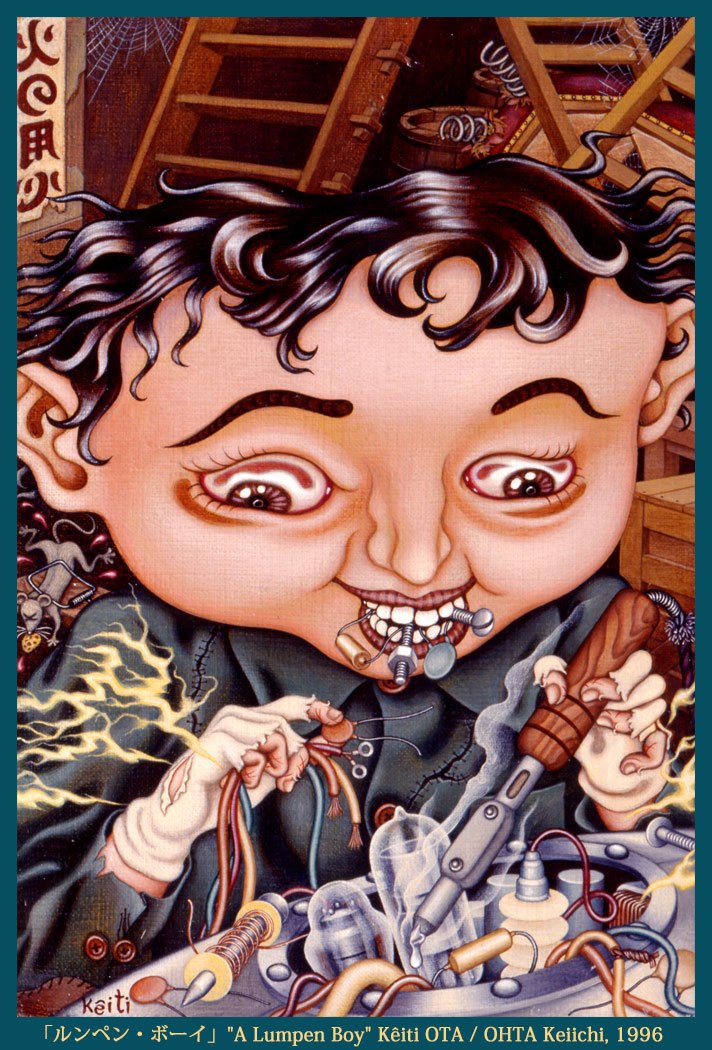 Oota Keiticle is a Japanese illustrator and designer associated with Tokyo’s underground art and vintage fashion scenes. His work features sharp linework, bold compositions, and darkly playful characters. Often depicting big eyed children, he draw from punk culture, manga, and street aesthetics, often blurring the line between graphic design and fine art.