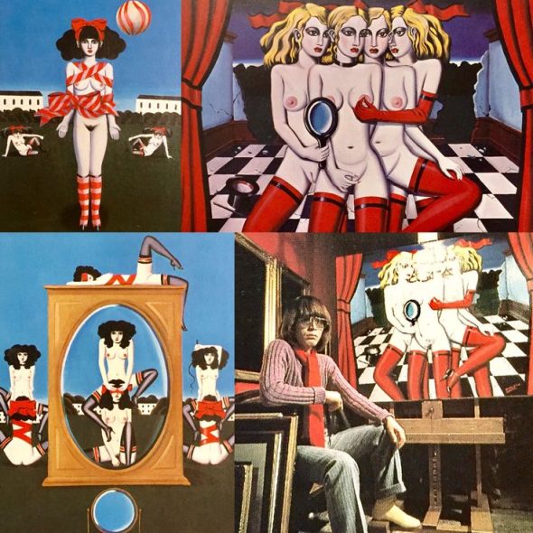 In his later work he also explored erotic imagery more openly, combining sensual figures with his characteristic psychedelic motifs. The results are both playful and unsettling, blending sexuality, humor, nostalgia, and surreal fantasy into a dense visual universe.