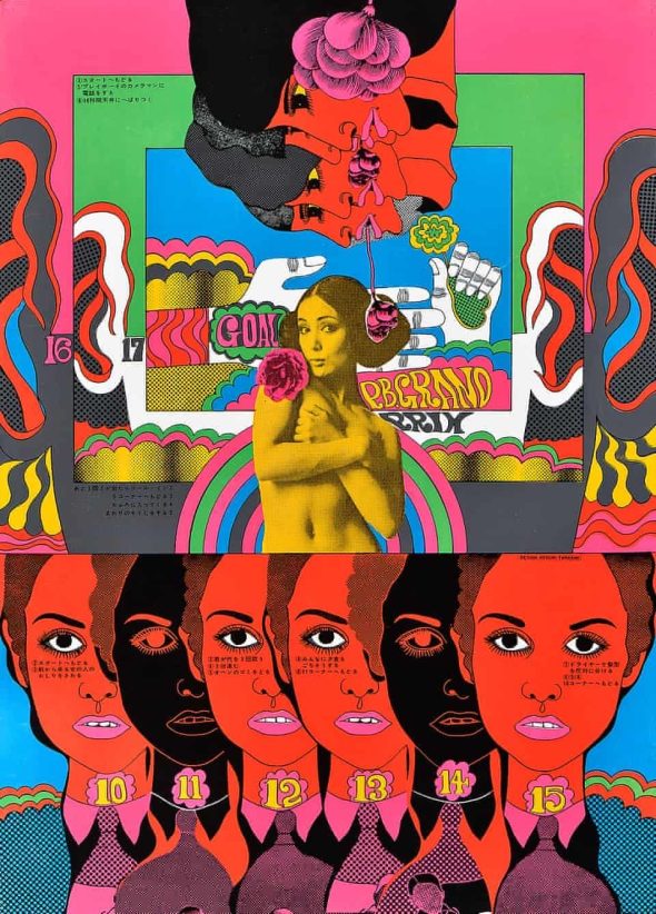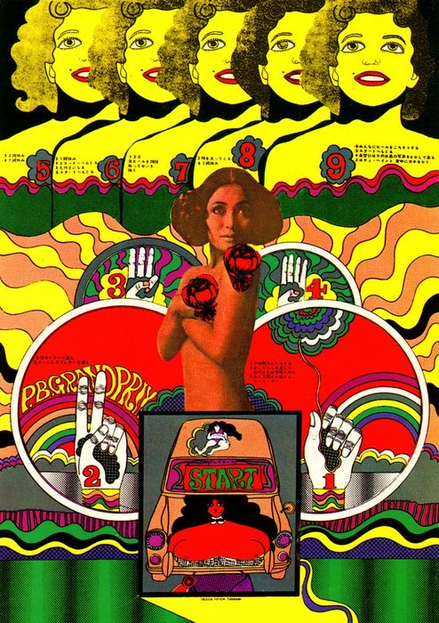 Three of the most important figures from this period are Tadanori Yokoo, Keiichi Tanaami, and Kiyoshi Awazu. Although they share certain visual references, each developed a very distinctive approach.
