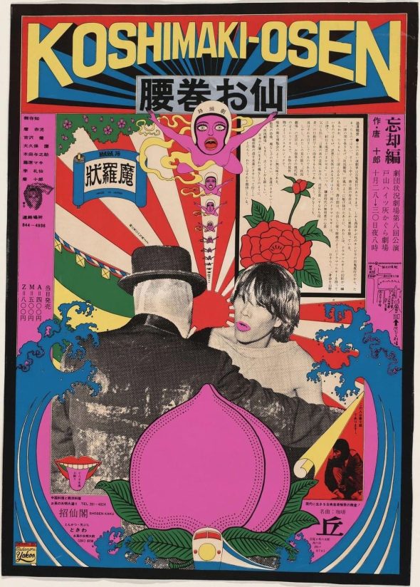He first rose to prominence in the 1960s with a series of striking posters created for avant-garde theater productions, underground films, and experimental music performances. At a time when Japan’s counterculture was flourishing, Yokoo’s bold graphic language—combining pop art, psychedelia, advertising imagery, and surreal humor—captured the energy of the era and helped define its visual identity.