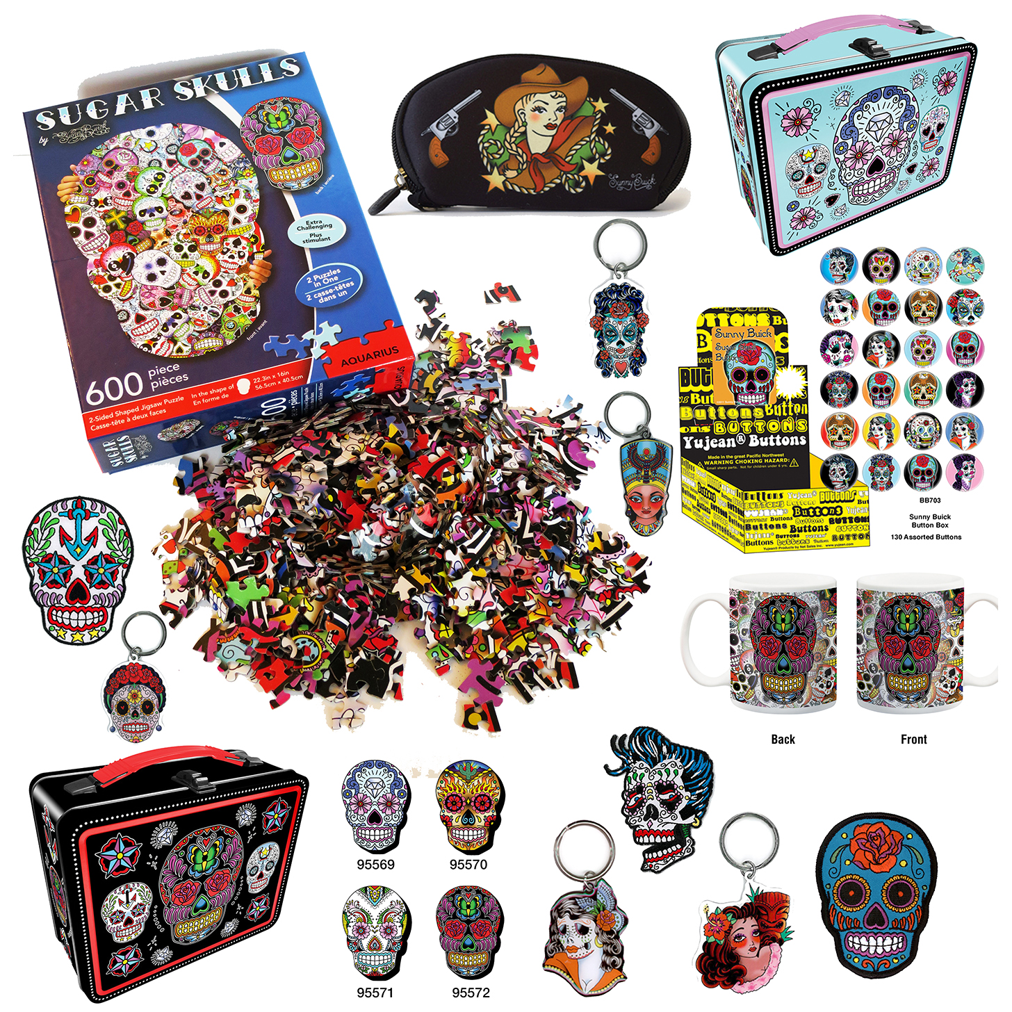 Logos, stickers, t-shirts, puzzles, lunchboxes and stickers.