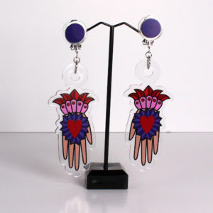 Milagros Flowers Heart Plastic Earrings- by Sunny Buick