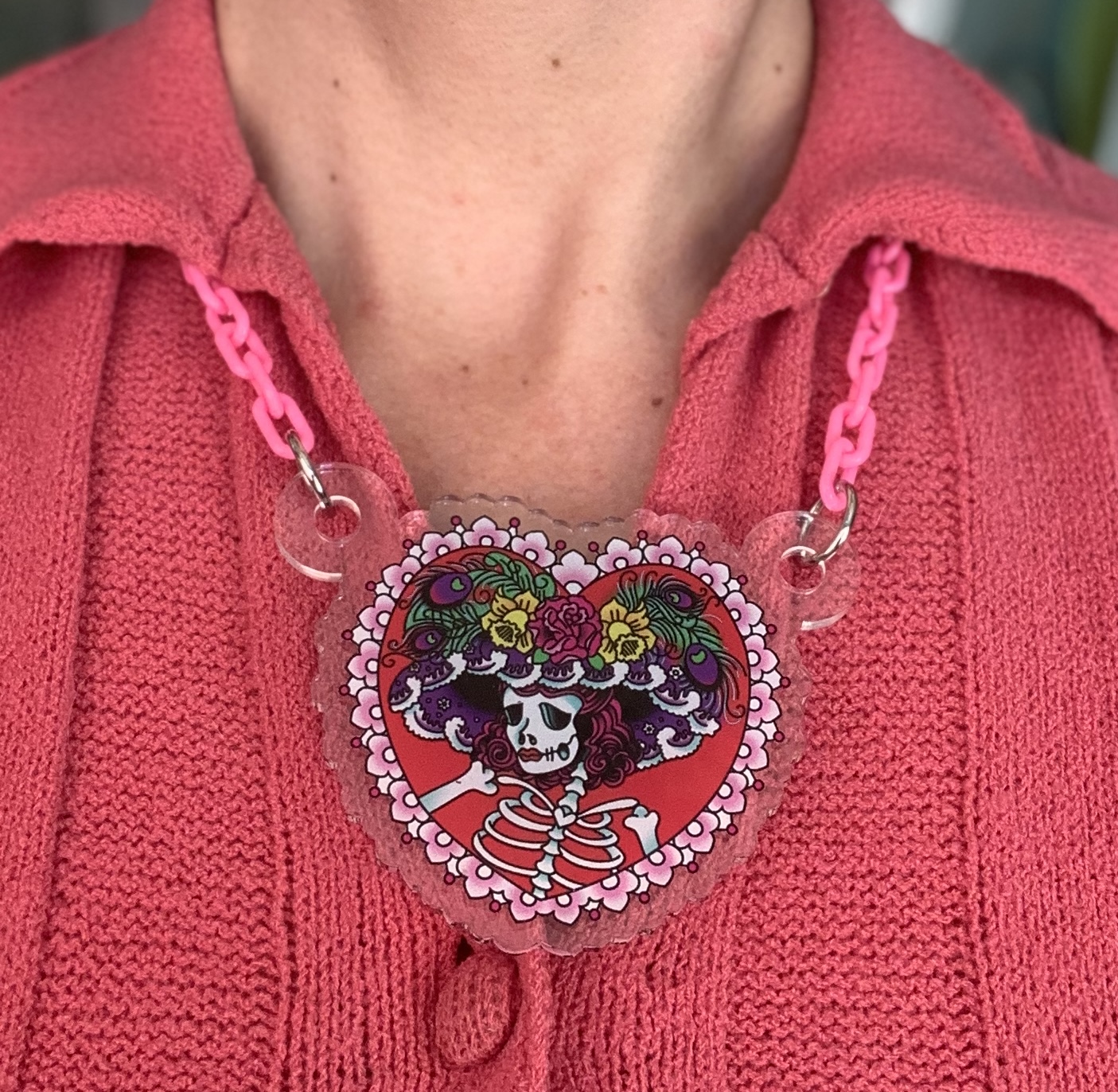 This necklace has been hand-designed and laser cut from 4mm plexiglass sheets right here in Paris, France.