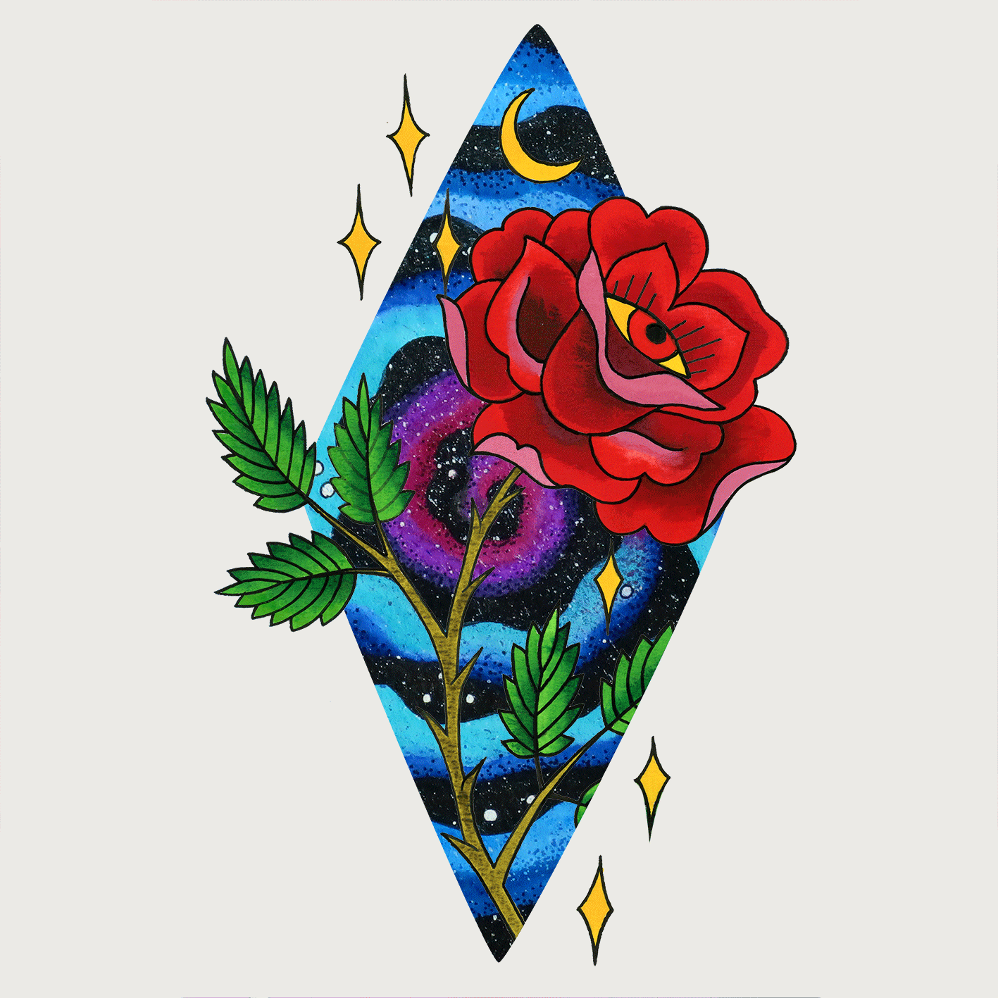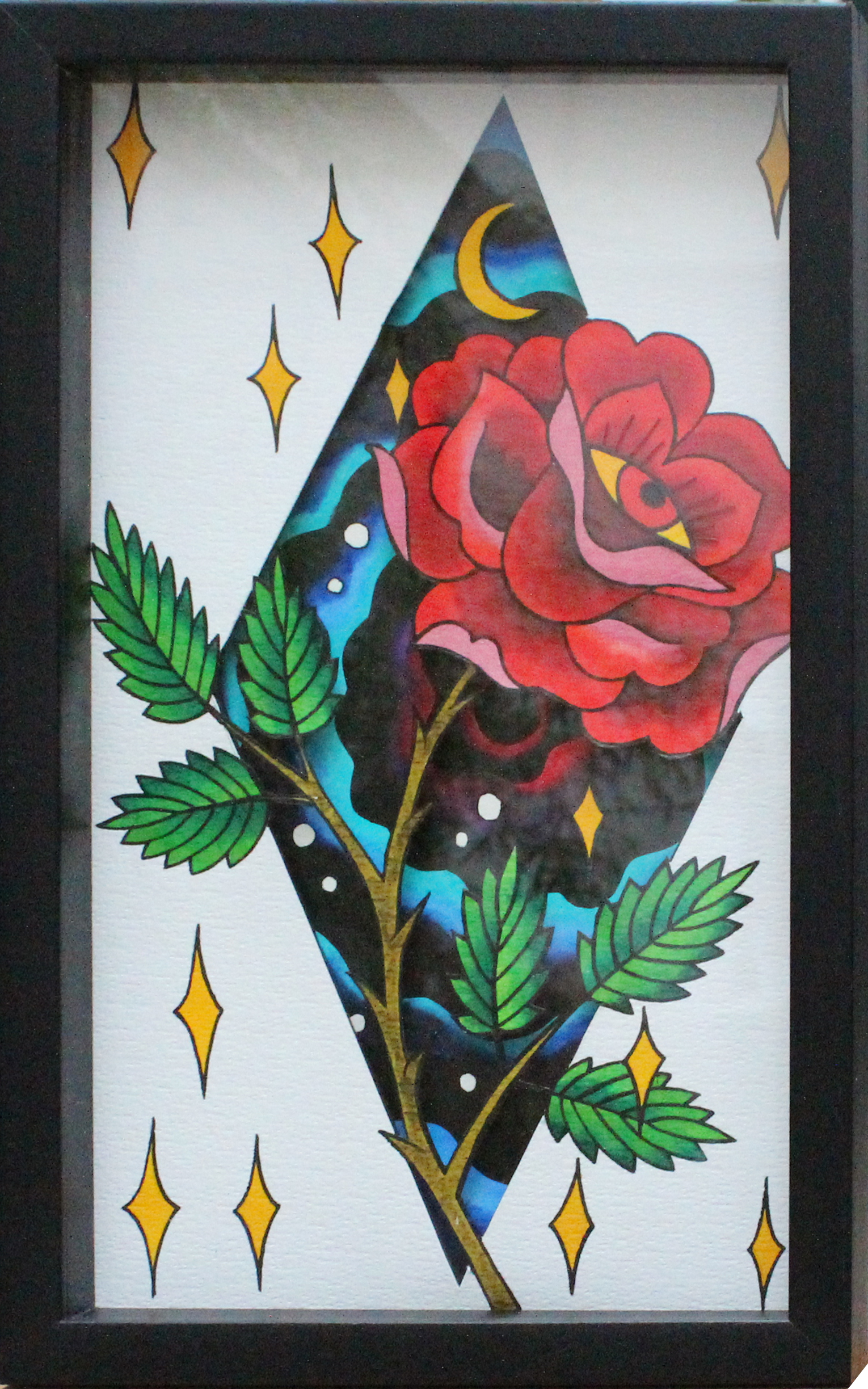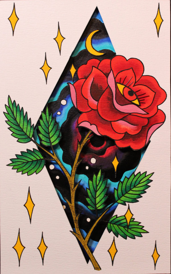 It is three demensional. You can see that the spiral galaxy is deeper in the background. The eye is also up off of the rose and the eyelashes are real pieces of plastic wire.